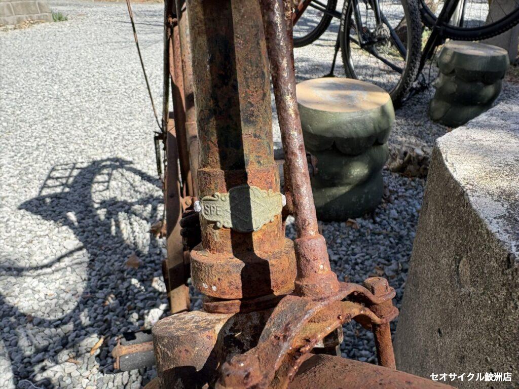ロッドブレーキに昔の防犯登録?と思われるスチールプレートのナンバーが