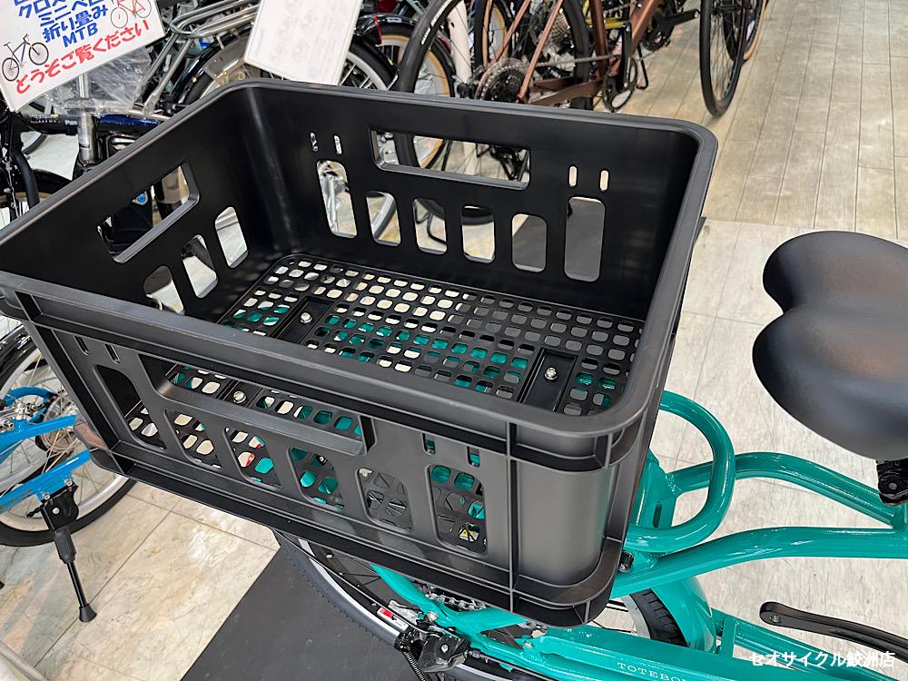 後ろにでっかい箱がついた働く自転車【トートボックス】。普段の買い物系で使う人もいればお蕎麦屋さんなど業務で使ってる方も多いデカカゴ自転車。