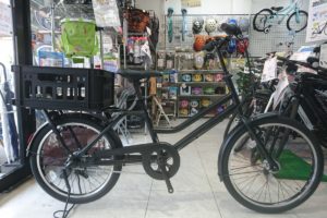 車輪小さ目の自転車で荷物たくさん積めるトートボックス。ラージサイズは前24インチ後22インチで身長148cmから乗れます。しっかりした作りで重そうに見えますがアルミフレーム採用により意外にも普通の自転車並みの重さなんです …