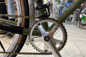 フロントシングルxリア9段のマジーミラノをフロントダブルギア化のご依頼。ご依頼ありがとうございます。 フロントダブルギア化はBB軸長や変速に関わる隙間やラインの調整等有り、パーツ付けてハイ終わりとはまず行きません。 ダブ …