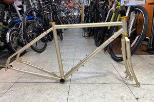 グラベルフレームとしてはかなり安いマジーのカタリナフレームフォークセット。 量産品にはないシャンパーニュカラーは1本しか作らなかったカラーです。サイズは470mmで身長160~170cm弱の方におススメです。 量産しない …
