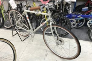 フレームを仕様チェンジする次回作カタリナフラット、470mmを1台だけご用意できました。本格入荷は今夏か秋?予定です。 量産のマットチタンよりはゴールドぽいカラーです。このカラーは量産に使わないかもしれないので希少といえ …