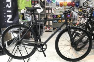ダースベイダーのようなブラックなバイク。この手のカラーリングはクロスバイクでも多く汚れにくさとクールな印象で人気の高いデザインです。 今年のファストバックは価格も7万台と手ごろなのと、スローピングがきつくないデザインでカ …