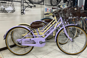 お手頃価格の子供自転車入荷です。 セオサイクルオリジナルモデル、カテリーナ22インチと24インチです。 跨ぎやすさとデザイン性を重視したフレームにオートライトを装備した普段使いしやすい機能でまとめました。 ラベンダー ア …