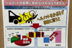 警視庁よりご案内 ヘルメット着用啓蒙。浅くかぶったり、頭にのっけてるだけの方も見かけますが、ヘルメットは正しく被らないと転倒時にずれたりぬげたりして逆に危険な時もあります。きつすぎず緩すぎずあご紐の調整も忘れずに。 9月 …