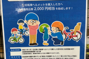 品川区ヘルメット購入助成が令和7年3月31日まで延長になりました。 品川区在住で期間中に適合ヘルメット購入いただくと、2000円の商品券がもらえます。より多くの方を対象とする為今回から保険加入必須条件はなくなりました。 …