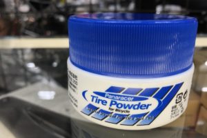 お問い合わせがたまにありますタイヤパウダー入荷です。 タイヤとチューブのはりつきを抑えて膨らみを均一にします。タイヤ裏がザラザラだとそこにチューブが引っ掛かりリム側だけ以上に膨らんで薄くなり時間がたつと穴があくというのも …