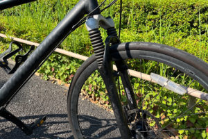 クロスバイクはロードと似ていて軽さとスピード感がメリット。サスペンションなんて重くなるしスマートじゃないから不要とされてきました。 このスタッフ買い物用クロスバイクもサスペンション装着前はもちろんリジッドフォーク。そして …