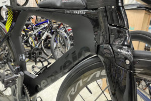 スピードファルコ、フロントWギアカスタムの依頼を承りました。標準仕様はシングル53T仕様ですが、上りがきついという事でインナーギアを追加することに。38T追加でかなり坂は楽になるはずです。 使用チェーンリングはスギノ13 …