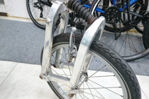 フロントフォークが特徴的なパシフィック製プジョーパシフィック18。かつてはBD-1と人気を2分し、相当量が国内で流通した18インチの折り畳み自転車。高いスポーツ性能に加え、簡単且つコンパクトになる機能に凡用パーツを多用し …