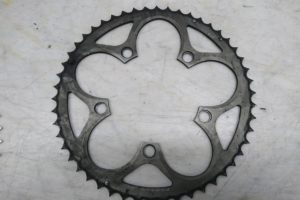 53(52)x39クランクは昔だったら普通の仕様。みんなこの歯数でガンガン走ってたもんですがコンパクト主流の昨今、時代を感じる大きさになってきました。インナーを軽くしたくても38までしか下げられない130PCDクランクで …
