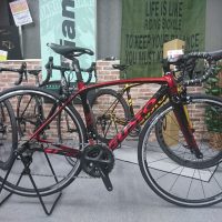 2020からコルナゴ扱い始めます。カーボンロードのCーRSやアルミロードの他、クロスバイクも展示してます。 明るいカラーは軽く速く見え、ホワイトにブラック&レッドのアクセントカラーはレーサー感十分。走るアートにふさわしい …