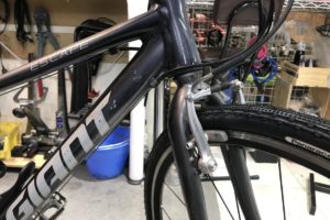 スタンダードクロスバイクの代名詞、エスケープR3のXXSサイズ(身長140~165cm)。 サドルは700cタイヤと同じくらいの位置まで下がります。 身長140cm~OK。 ペダルを取り付けるクランクアーム。ここが長いま …