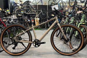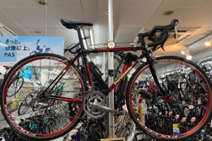 展示しておりましたパナソニッククロモリロードを試乗車にいたしました。パナソニックのクロモリロードを乗れる機会はかなり少なくオーダーしようにも躊躇してしまうお話をよく聞きます。最高クラスのフレームではありませんが、十分にク …